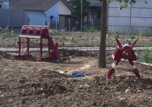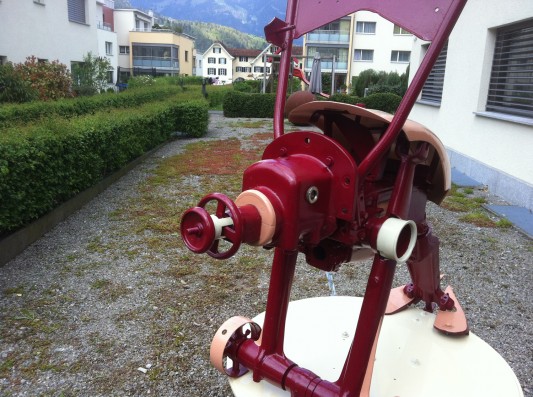 Stahl, Alu , Guss einbrennlackiert auf Betonsockel