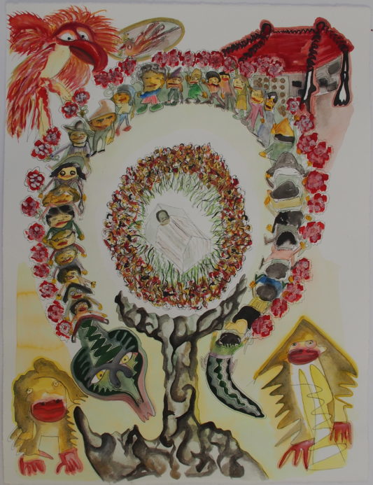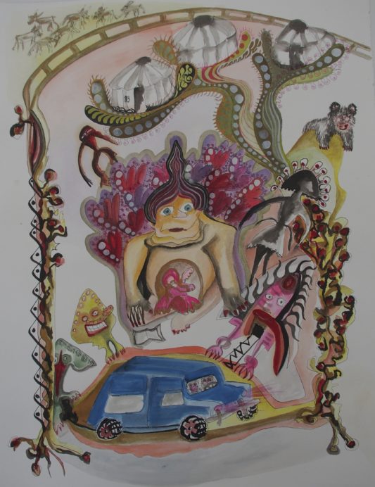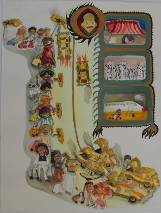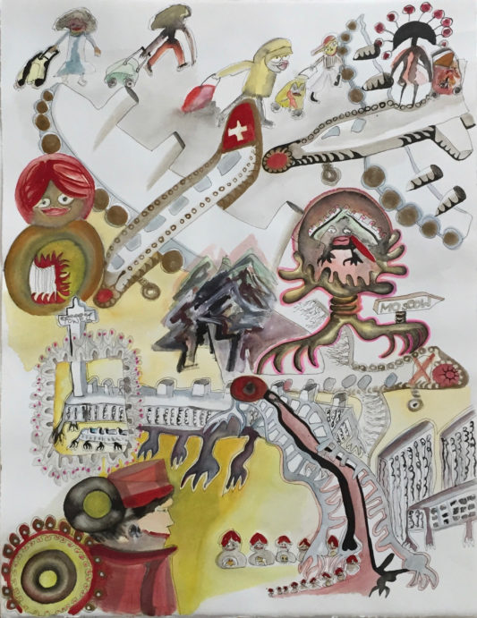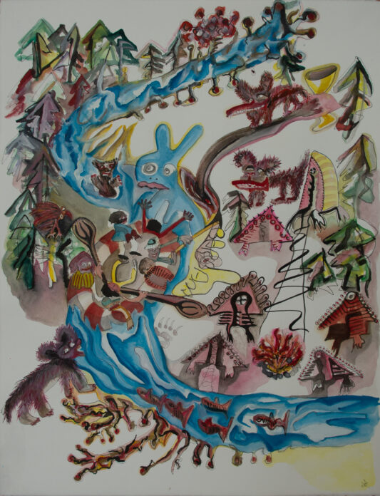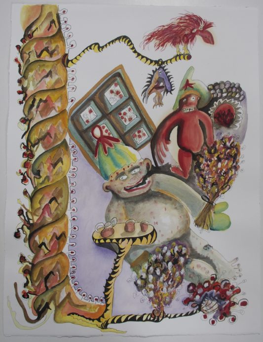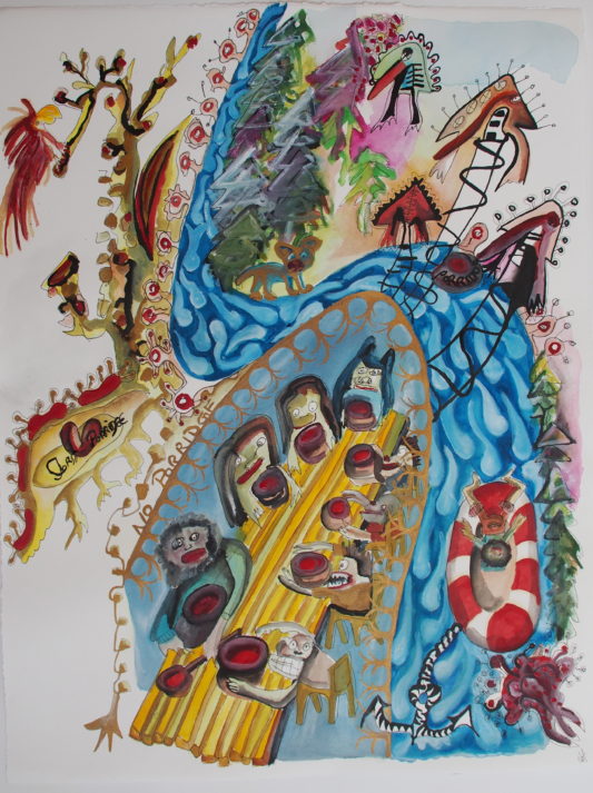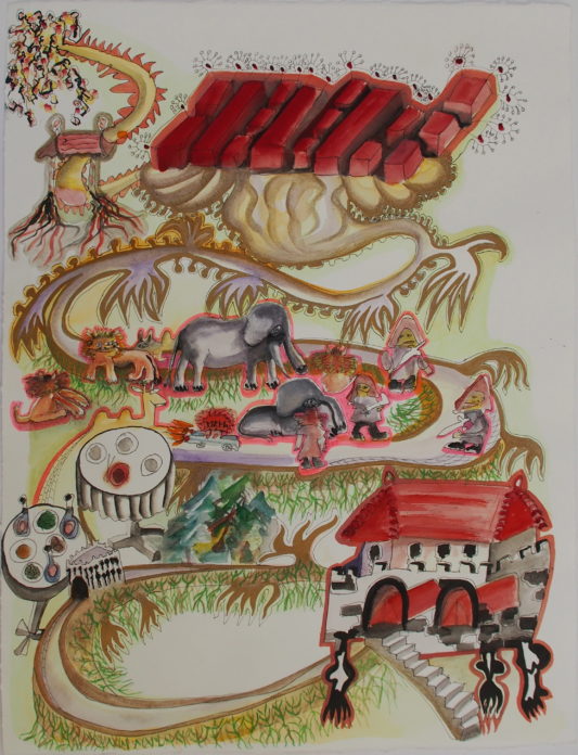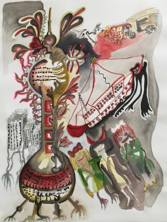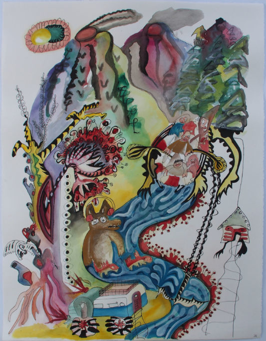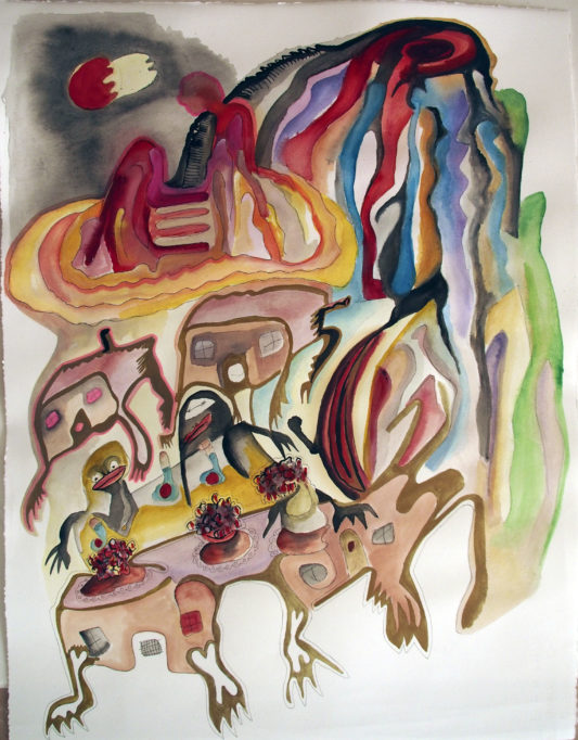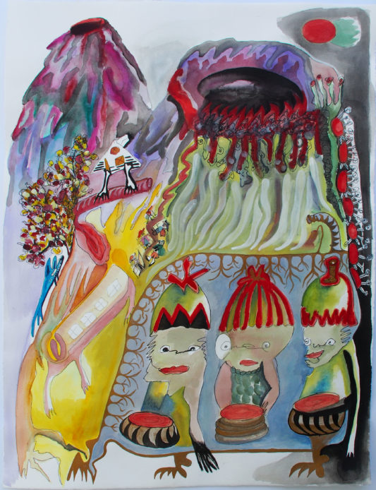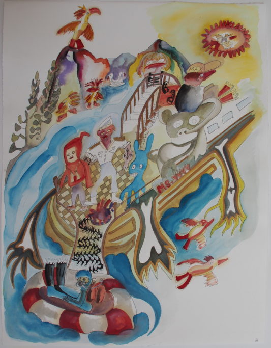 Aquarell, Tusche, Farbpigmente auf Bütte